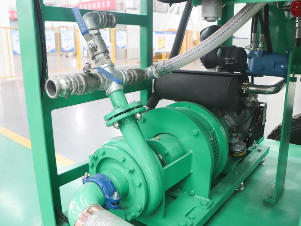 LHS0217PT Hydroseeder with Honda gasoline engine has an engine design of a 23 H. P. BRIGGS STRATTON gasoline engine made in the USA that is directly coupled to a 3″ X 1.5″ high volume, high pressure centrifugal pump and oil gear pump that drives an aggressive mixing paddle. The platform and tower gun are standard equipment. Standard equipment includes 60m of DN32 hose with free flow couplings mounted on hose holders on the side of the tank. It also includes three nozzles ( 1 wide hydro seeding nozzle, 1 straight distance nozzle, and 1 trim nozzle). The spray distance of the tower gun is approximately 28m.